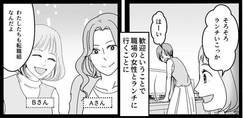 主人公は転職した先の職場で、同僚とランチに行くことに。