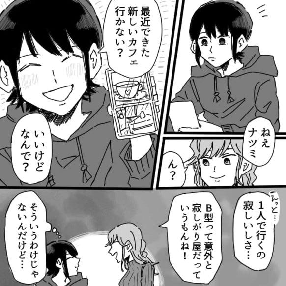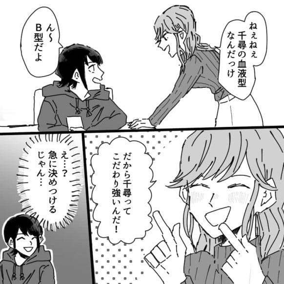 血液型を理由に決めつけてくるナツミに、千尋は困惑してしまいます。
