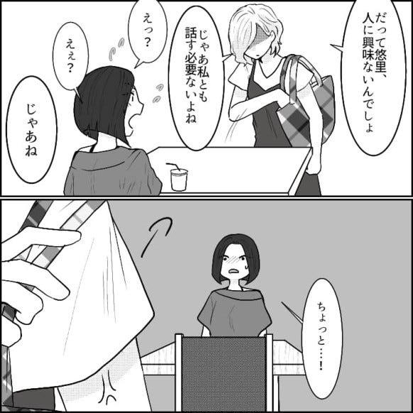 ある日悠里と共通の友だち・ルリの話をしていると「よくそんな他人に興味あるよね」と衝撃的な発言をされました。