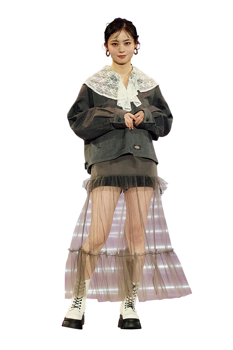 えりやスカートの大胆な透けで魅せるガーリーカジュアル。