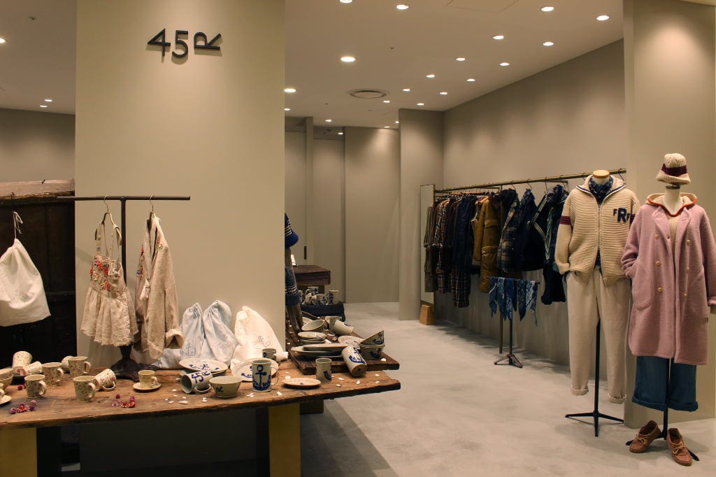 洋服や服飾雑貨だけでなく、ライフスタイルアイテムが充実しているのも、このフロアならでは。「GALERIE VIE(ギャルリー・ヴィー)」では「トゥモローランド ホーム」のルームアイテムなども新たに導入。「45R(フォーティファイブ・アール)」では、日々の食事の時間をより楽しくしてくれる器を初展開。陶器ならではのぬくもりのある質感に、かわいらしいデザインが食卓を豊かに彩ります。素敵な器はいつもの食事をよりおいしくしてくれそう。