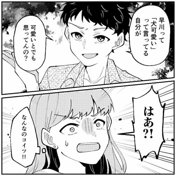 同じサークルの男子に「自分が可愛いとでも思ってんの?」と衝撃的な発言をされ、驚く主人公。