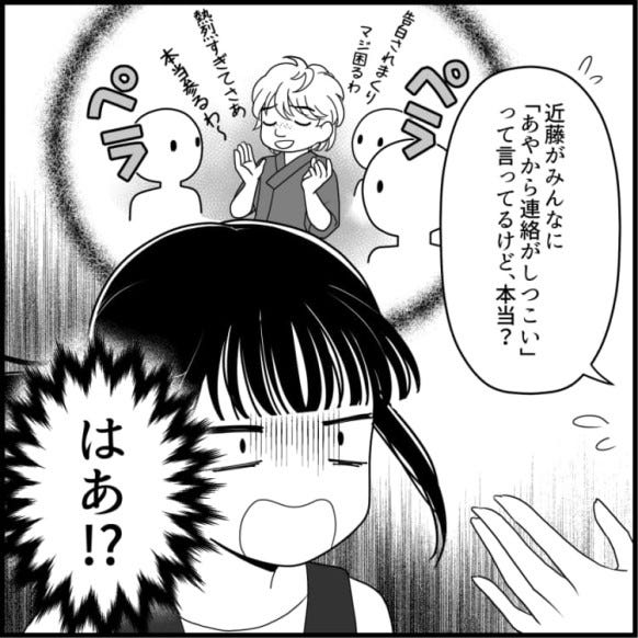 近藤さんが変な噂を流していると聞き、驚く主人公。