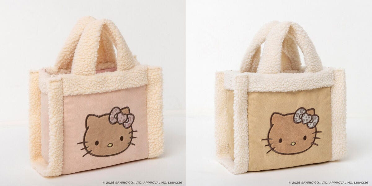 ヒョウ柄リボンをつけた限定デザインのハローキティが、ふわふわのフェイクムートンバッグに!