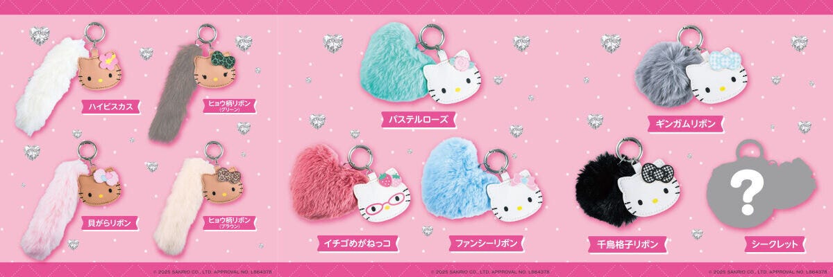 ハローキティとふわふわファーの組み合わせがかわいいチャームセットは、ブラインドタイプの全10種類。