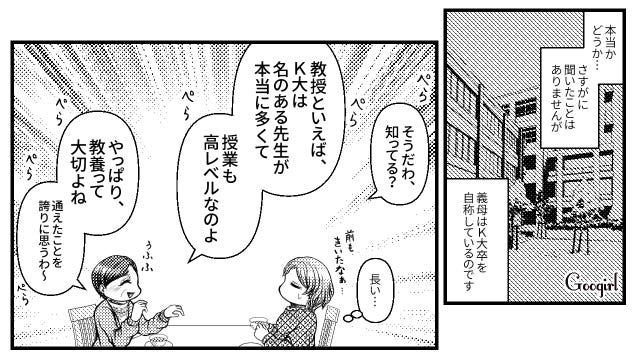 ▽ 学歴自慢を聞くのはストレスですよね。ただ学歴を偽っている可能性があるとしたら、義母への不信感が募るでしょう。