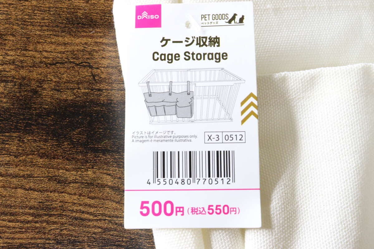今、SNSでじわじわと話題になり始めているダイソーの新作商品。筆者もとうとうGETしてきちゃいました。今回ピックアップするのは、その名も『ペットケージ収納』。お値段は¥550(税込)。ペットグッズ売り場に並んでいました。