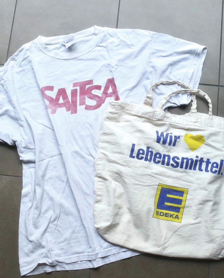 「雰囲気が可愛くて即買い♡ 手前のトートバッグはドイツのスーパーマーケットのロゴ。