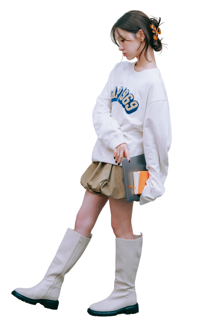 BIGロゴスエット 6,990円/Gap ヘアクリップ 1,760円/アネモネ(サンポークリエイト)ロングブーツ 19,910円/RANDA