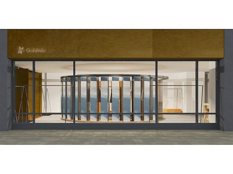 「ゴールドウインロンドン」は路面店で、店舗面積は約170平方メートル。ロンドン・ソーホーの中心に位置する象徴的な通りであるブロードウィック・ストリートに構える。売り場中央には環状の「社(やしろ)」をしつらえ、ブランドのスタイルや理念を発信する。店舗設計は新素材研究所が担当した。ゴールドウインは25年5月に英国法人を設立。店舗開設の準備を進めていた。