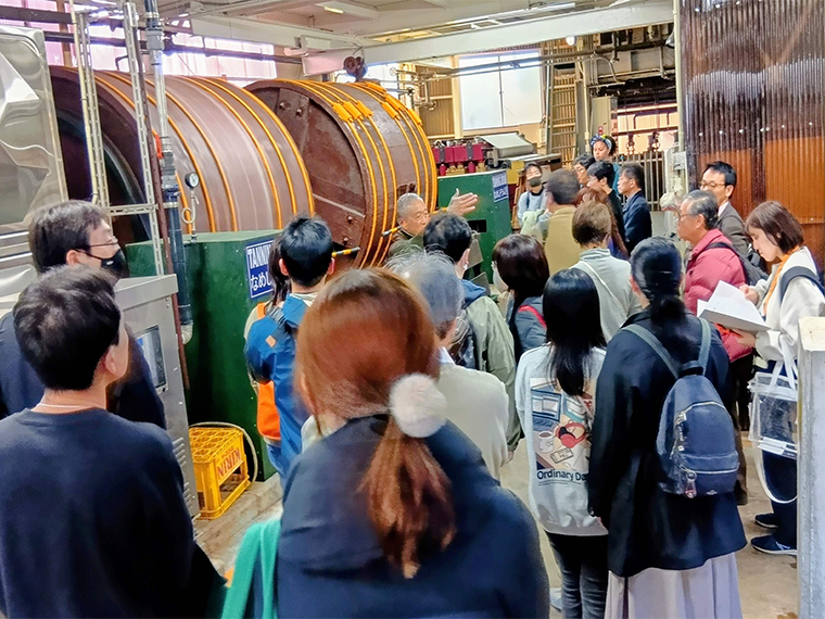 今回テーマに掲げたのは「共創」。コロナ禍の中止を挟んでの再開に合わせて、参加企業が仲間となって新たな価値を生むことをイメージした。新体制のメンバーで、改めてビジネスの活性化、新作の開発、働く人の意欲向上につながること、継続開催で持続可能性を高めることを確認しての再出発となった。参加企業は繊維、印刷、金属、皮革など52社で、前回の36社から大きく増えた。カフェやチョコレート会社2社が加わってスタートアップから老舗企業まで揃い、参加職人の世代が拡大した。スタンプラリーの参加が候補31社のうち25社が快諾するなど参加機運も盛り上がった。11月14日から3日間の来場者は延べ5000人で、前回比1000人増と伸びて工場見学ツアー、ワークショップ、物販、スタンプラリーとどれも人気だった。