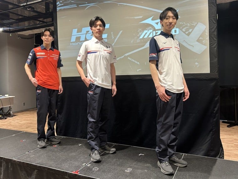 25年12月にパートナーシップ契約を締結した。HRCを象徴する赤・青・白を基調としたデザインが特徴だ。2輪・4輪で共通したデザインのユニフォームを採用するのはHRCでは初めて。日米の主要レースで着用する。「HRCとミズノは技術を核にする姿勢が共通している。今回も私たちの要求に技術で応えて頂いた」(渡辺康治HRC社長)。様々な地域で活動するため消臭や吸汗速乾、アウターなどには吸湿発熱といったミズノが得意とする機能性を盛り込んだ。