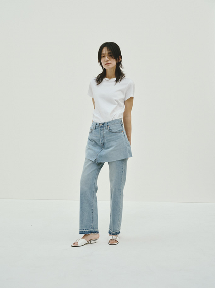 また、テーラーショップのスタッフが同期間限定店に合わせて特別にカスタムした商品も数量限定で販売する。「ロマンティック501」と銘打ったモデルはルーズな501にミニ丈のスカートをレイヤードしたフェミニンな1本。Gジャンはノーカラーにアレンジし、襟口と袖口にはスエードのリボンでアクセントを付けた。