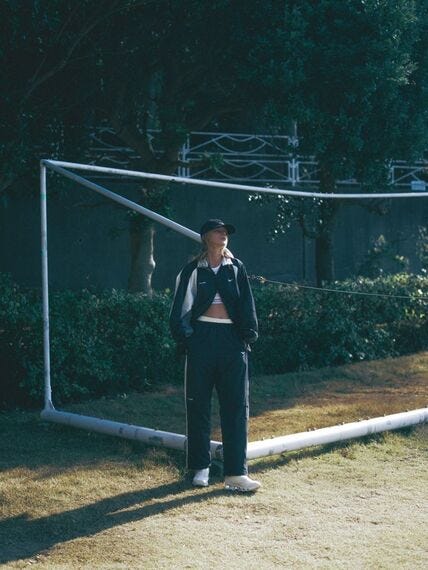 トラックジャケットは90年代のミズノのトラックジャケットをベースに、クラネらしいモード感で丸みのあるシルエットに仕上げた。ファスナーは逆開仕様、裾にはアジャスターを付け、スタイリングに合わせたシルエットの調整が可能。背面にはベンチレーションを施した。表地はタスランナイロンを採用し、軽量化しながらコットンのようなナチュラルな質感を残した。税抜き2万6000円。