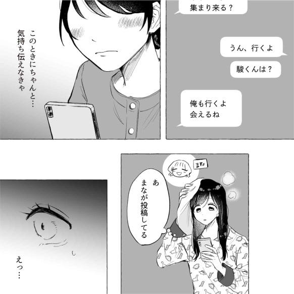 あいはまなの投稿を見て、駿くんと彼女が付きあっているのではないかと考えます。