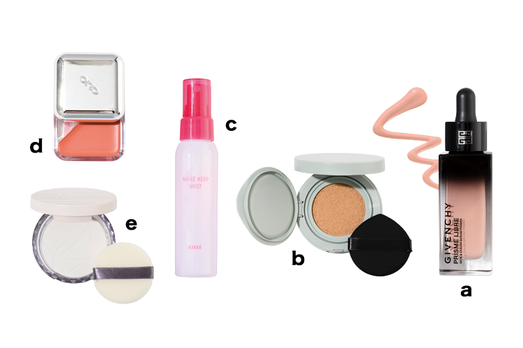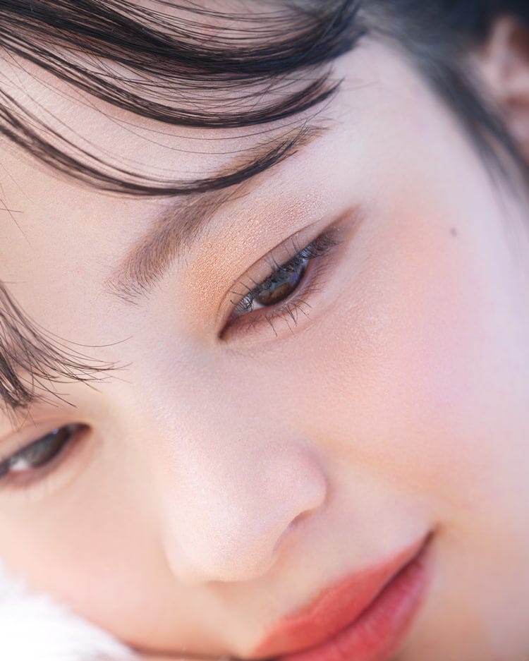 ベースメイク途中で仕込んだ練りチークと淡いパウダーチークが重なりあうことで、ほんのり上気したほおを演出。
