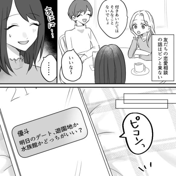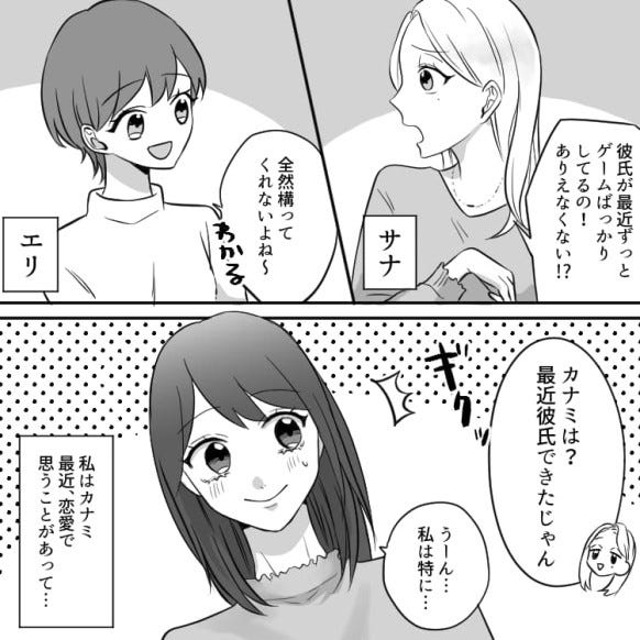 彼氏はいるけれど、友だちの恋愛相談に共感できないカナミ。