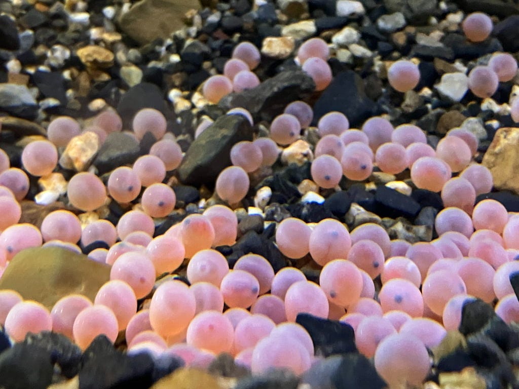 「京の川」エリアでは、サケの卵であるイクラを展示。稚魚になるまでの約2カ月間の成長を観察することができるそうです。