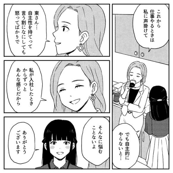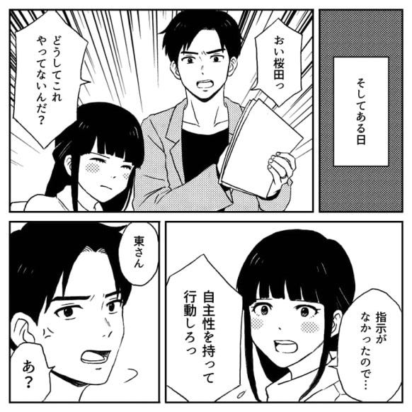 ある日上司の東さんに「自主性を持て」と言われ、自主的に仕事をします。