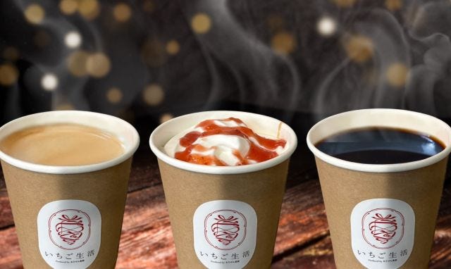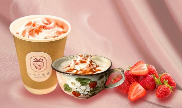 「ホットいちごミルク」をはじめ、後珈琲焙煎所の焙煎豆を使用した「いちごミルクカフェオレ」など、素材の味わいを活かしたホットドリンクを味わうことができます。