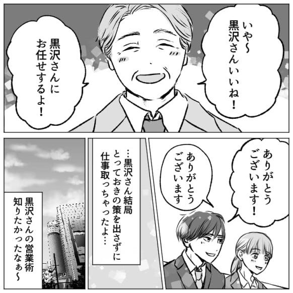 ある日業績のいい先輩社員・黒沢先輩が「とっておきの策を練っている」と言っていて……?