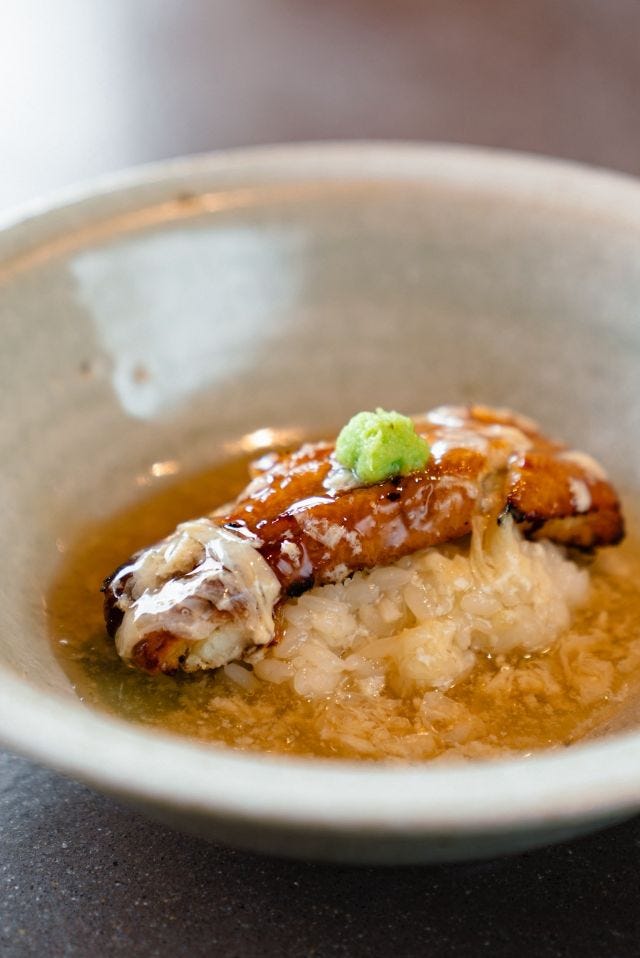 「焼き穴子の飯蒸し 汲み上げ湯葉の餡かけ」 1階の「A kyoto」では、黒毛和牛や京野菜を中心に、関西の上質な旬の食材を用いたコース料理を提供。コース内容は季節に合わせて、奇数月の1日に切り替わります。