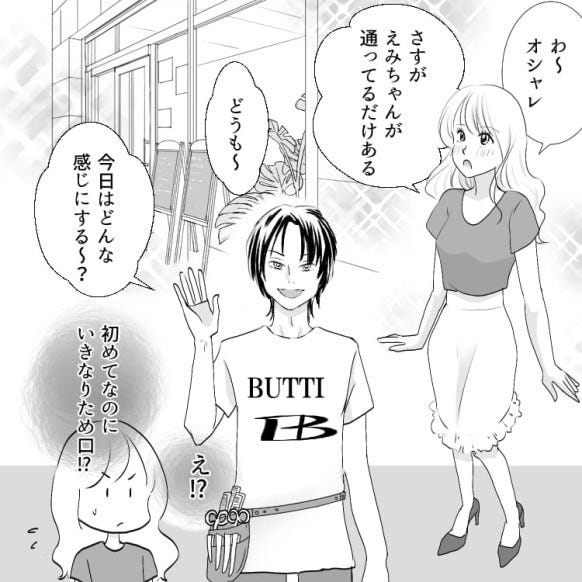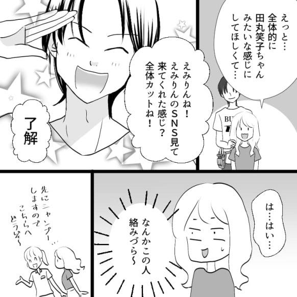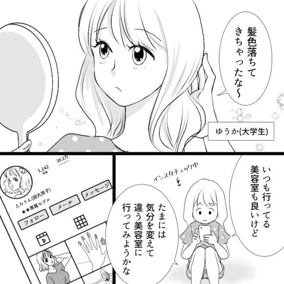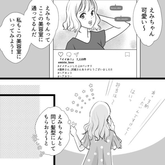 主人公はインフルエンサーのえみちゃんに憧れて、同じ美容室へ行くことにします。