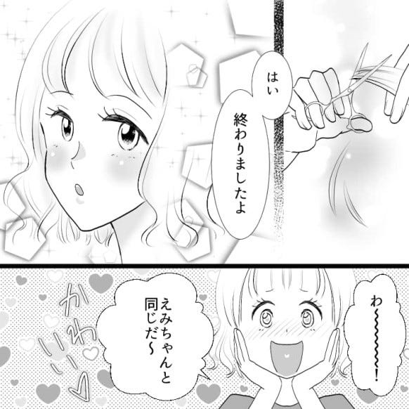 主人公は無事憧れのえみちゃんと同じ髪型になれるのでしょうか……?