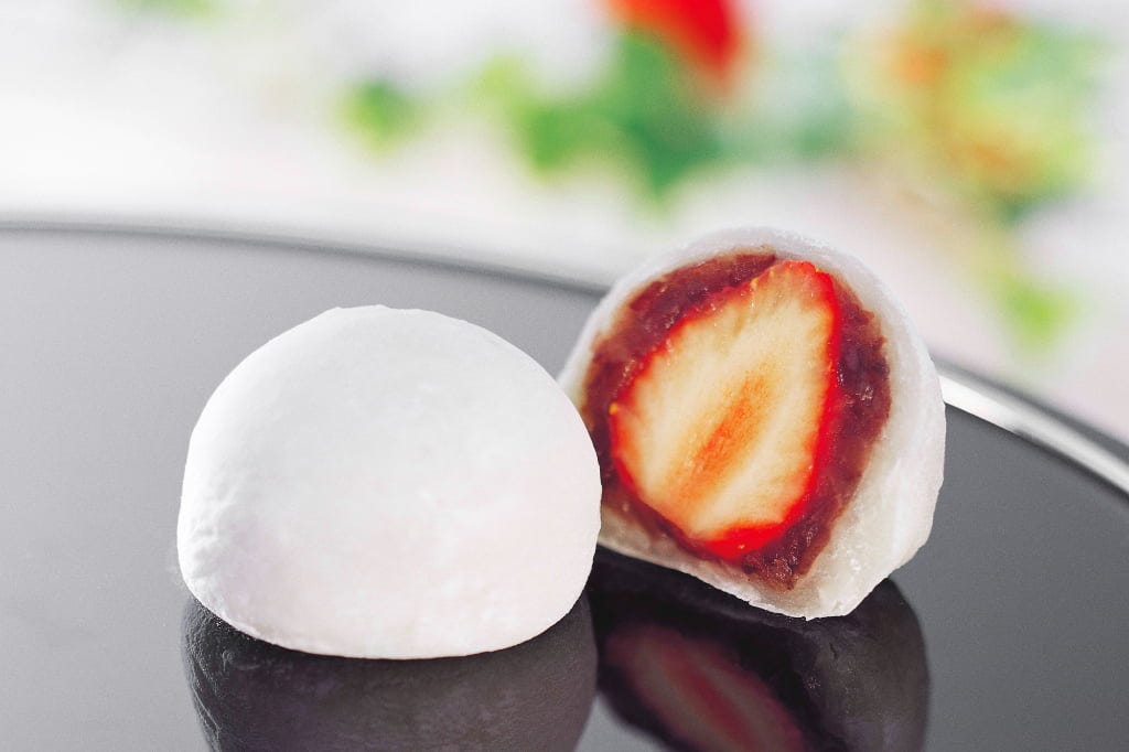 「丹波黒豆大福」(303円) 京阪淀屋橋店では、和菓子屋らしく季節の生菓子を常時5種類ほど展開。オープン時期は、関西風のさくら餅やいちご大福、定番人気の丹波黒豆大福などが予定されています。