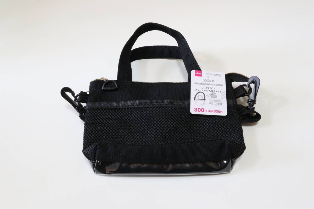 そんな不便さを感じていたときに、ダイソーで見つけたのが『スマートフォンも操作できるサコッシュ』でした。価格は330円(税込)です。
