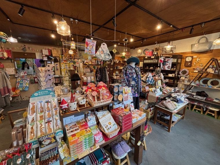 扱うのはエプロンやストール、服飾雑貨のほかキッチングッズ、文具、紙類、マスキングテープなど幅広い。アフリカンバティックの大きな布は、カーテンやインテリアとしてもそのまま使える。クリスマスシーズンに良く売れる絵本は、夫妻が古本屋を回って、「お勧めしたいものを自分たちの目で選んだ」。