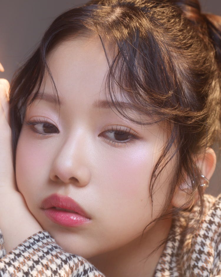 ▶︎マットな淡ピンクが表情に甘さを加える。