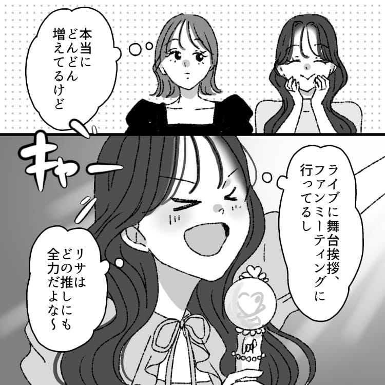 推しの話ばかりで、ミーハーなリサにうんざりな主人公。