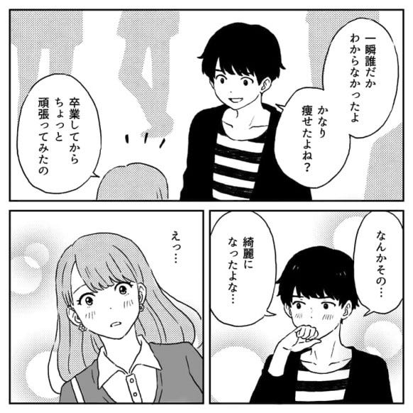 高校卒業後、ダイエットやイメチェンをした彼女は、友だちに「変わったね!」と言われます。