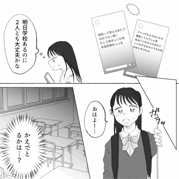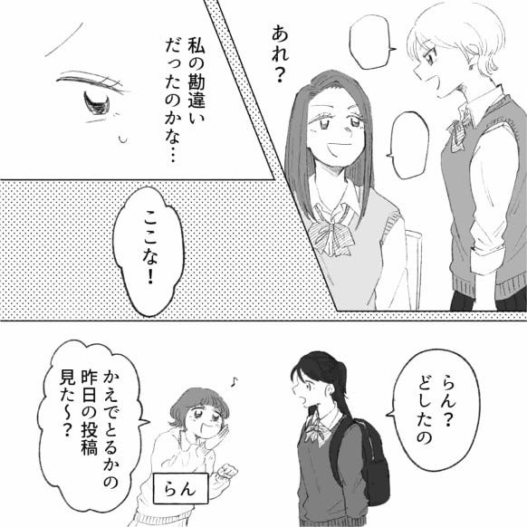 主人公は部活帰りにSNSを見ていると、友だちのかえでとるかが不穏な投稿をしていました。