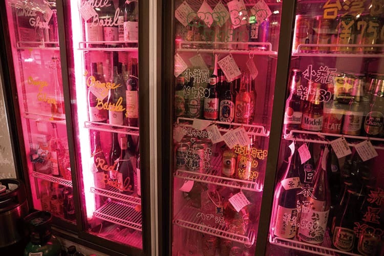 ネオンが光る、感度高めなムード空間。ドリンクは、ショーケースから自分で取るスタイルで「どれにしようかな?」と選ぶ時間も楽しい♡