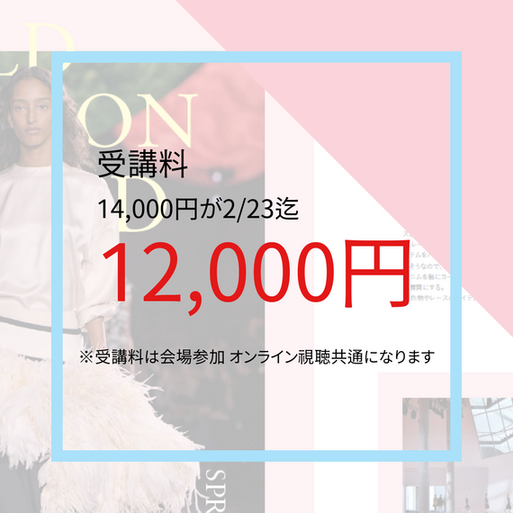 2月23日(月・祝)までのお申込みで、早割特別料金の12,000円(通常料金から15%オフ)でご案内します。さらに今シーズンからは、6名以上の同時お申込みで団体割※が適用となります。お得にトレンドセミナーを受講いただけるこの機会に、ぜひお申込みください。