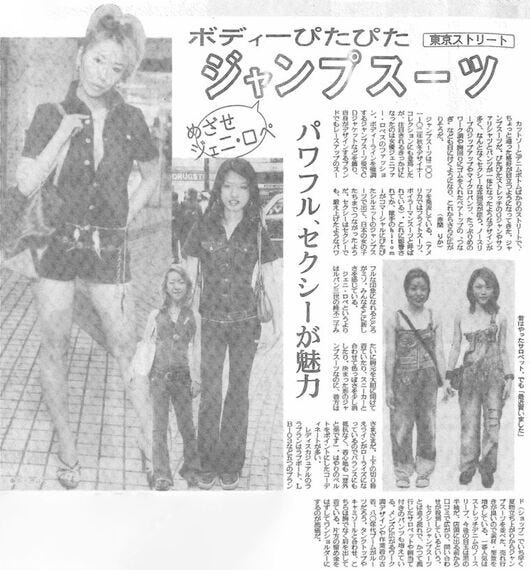 ファッションだけでなく、ジェニファー・ロペスさんの影響は強かったのです。一方のサロペットブームは、この時点で「懐かしい」復活で、別の日にサロペットの取材記事も載せました。