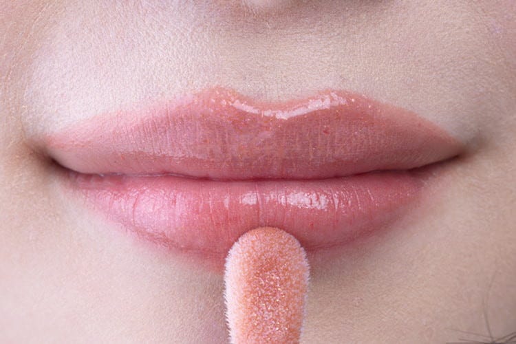を、唇の輪郭より少しオーバーさせながら全体に重ねる。上唇の山と下唇の中心はたっぷりめにつけ、ぽってりさせる。
