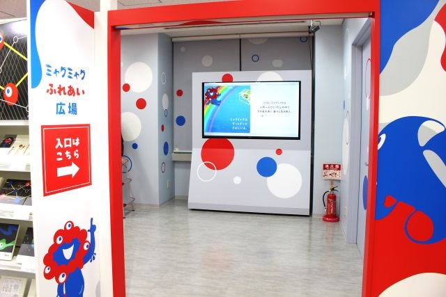 注目はなんと言っても、ストアの一画に設置された「ミャクミャクふれあい広場」です。