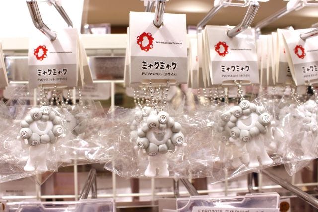 今年の1月に発売されたばかりの、白ミャクミャクのキーホルダーも販売されています。