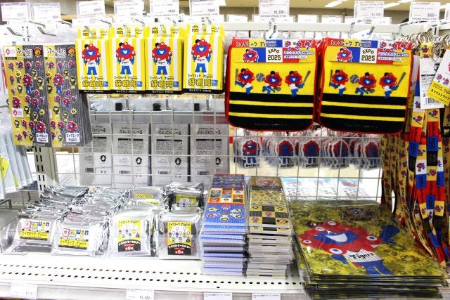阪神タイガースとのコラボ商品やフィギュア、お菓子などの食品、ミャクミャクをデザインした山下浩平さんの絵本など、たくさんのアイテムがそろいます。