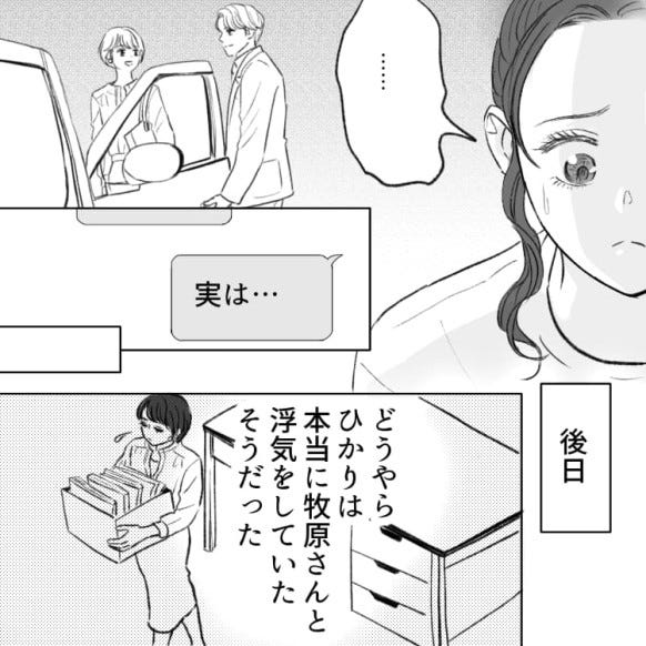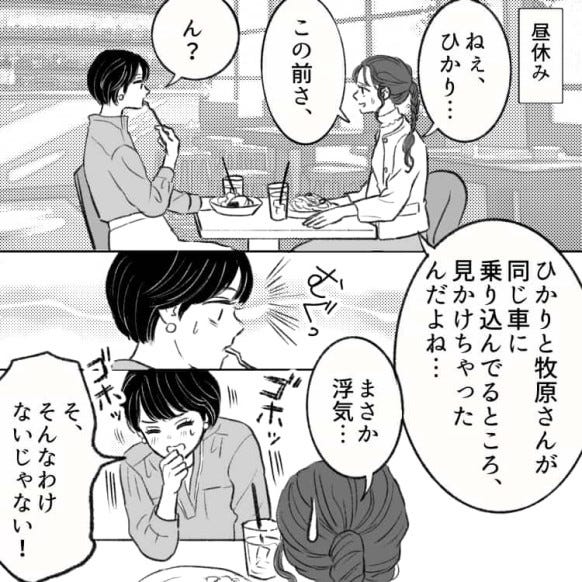 ある日ひかりと牧原さんが、車に乗り込むところを目撃したれいか。