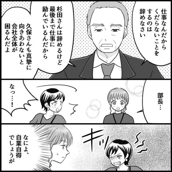 そのことが伝えられると上司の久保さんは、主人公が話しかけても無視をするように。