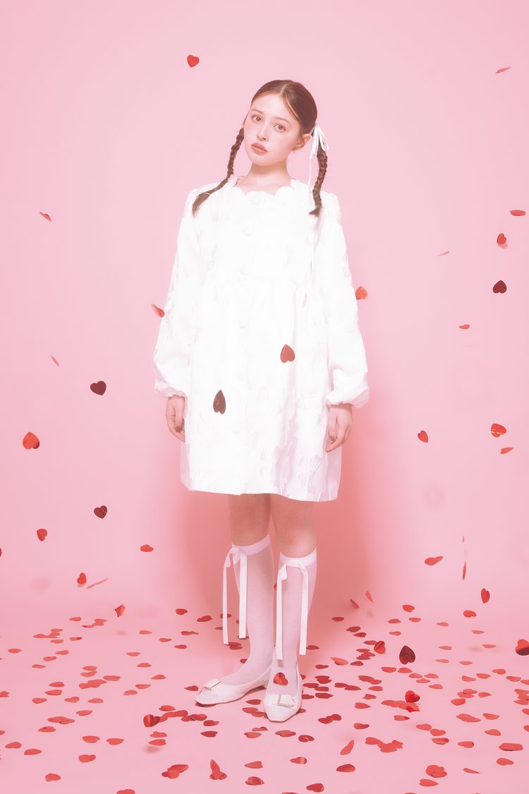 頭から足先まで純度100%の白をまとって、まっさらな好きの気持ちをアピール。コーデに添えたリボンで、思いをそっと結んで。