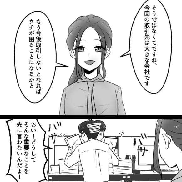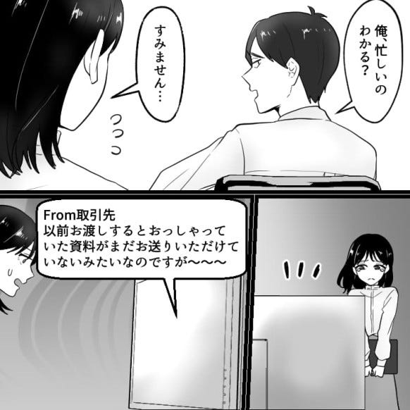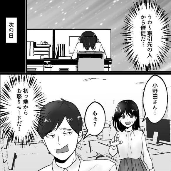 カナが小野田さんに資料を確認してほしい旨を言うと、「舐めてんの?」と言われます。