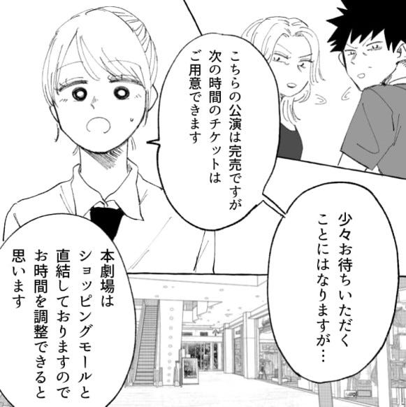 ある日、家族で劇場にきた夫婦がチケットが売り切れになったのをきっかけに、売り場で大ゲンカを始めました。