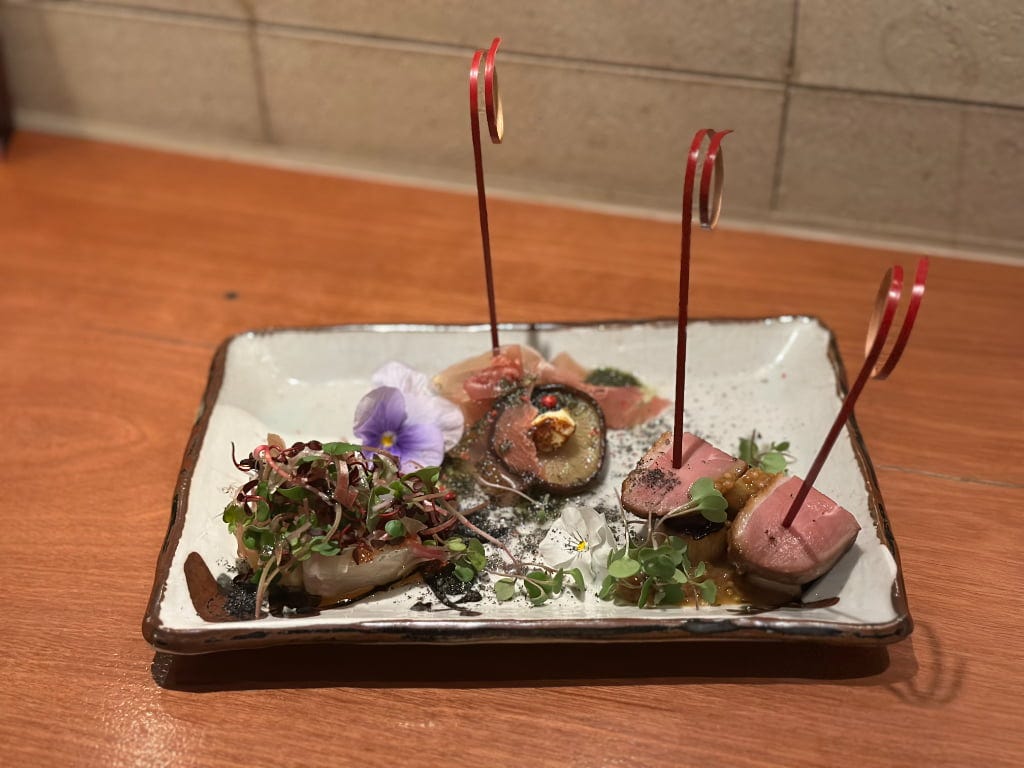 スペイン発祥のひと口サイズのおつまみ「ピンチョス」をメインに提供する「奈良料理mikado」。同店のピンチョスは地元食材やお客さんのリクエストを取り入れた、奈良らしく独創的なメニューとなっています。町家の格子戸を開くと広がるリゾートチックな飲み空間で、美味しいおつまみをお供にグラスを傾けるラフでオツなひとときを。