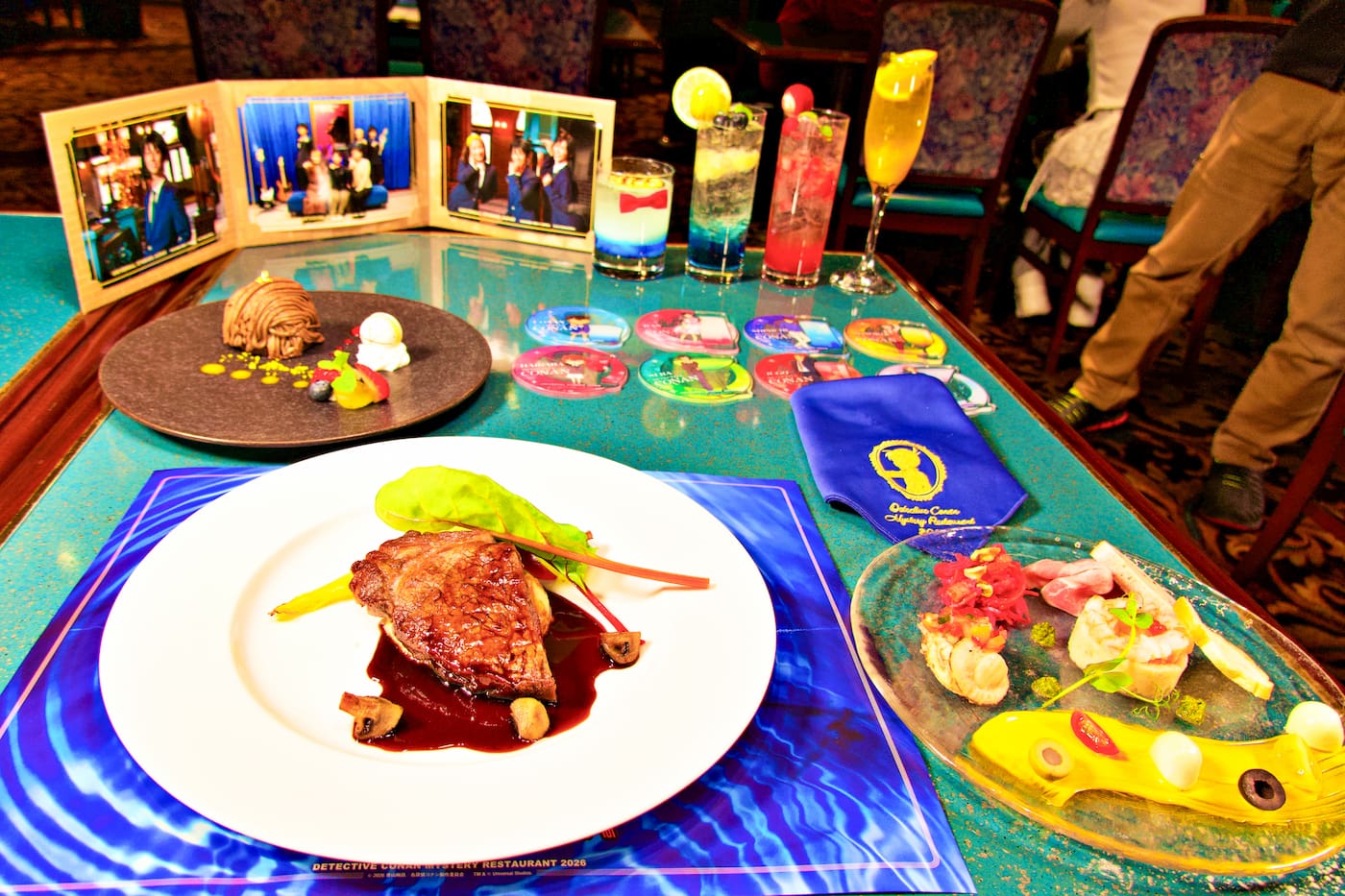 次はロンバーズ・ランディングで2026年5月31日(日)まで開催中の「名探偵コナン・ミステリー・レストラン」へ。“超リアル”なコナンの世界に入り込み、新一と蘭が目の前で繰り広げるオリジナルストーリーを、食事とともに楽しめる人気コンテンツが、生歌&演出強化でさらにパワーアップしています。
