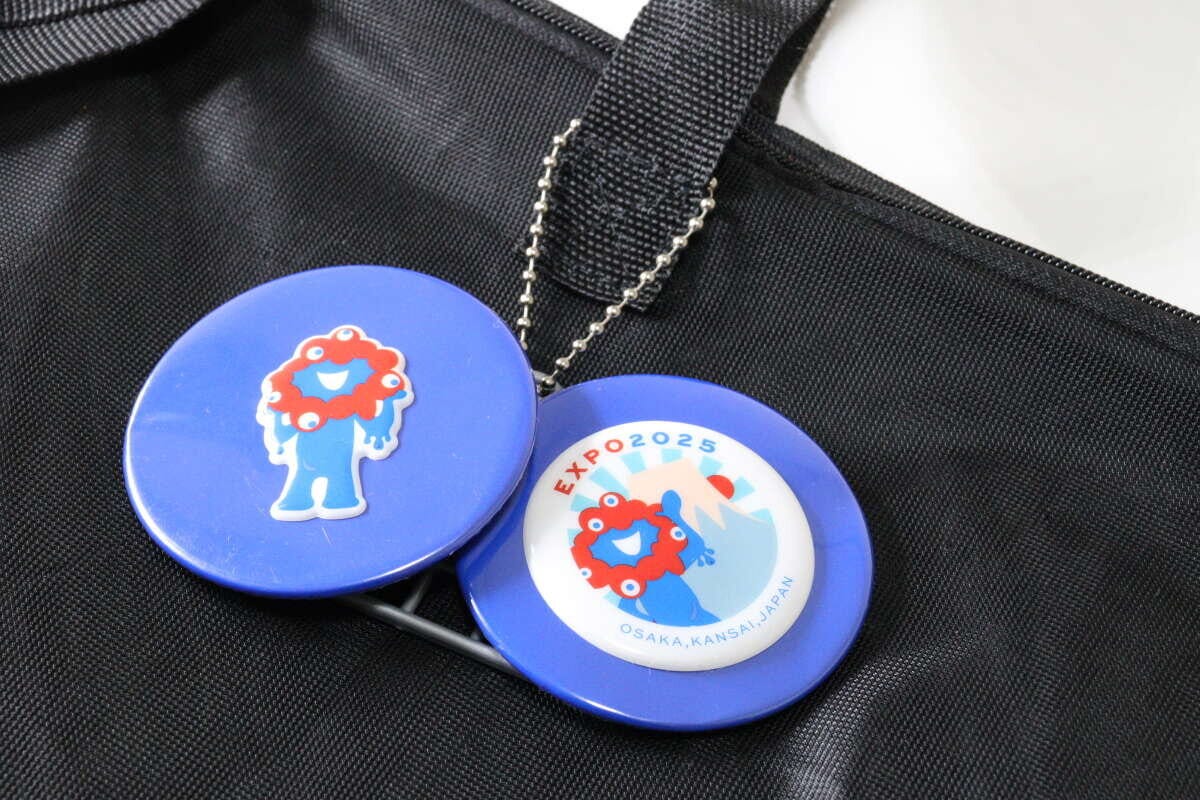 使い方は缶バッジの針をワイヤーネットの空間に通して固定するだけ。大きさにもよりますが、筆者は手持ちの缶バッジを2つ付けることができましたよ。